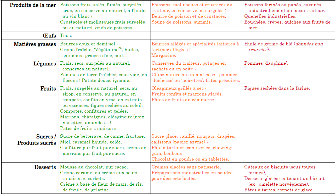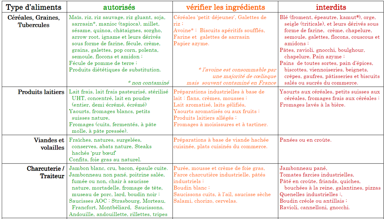 Céréales et féculents autorises et déconseillés aux intolérants au gluten :