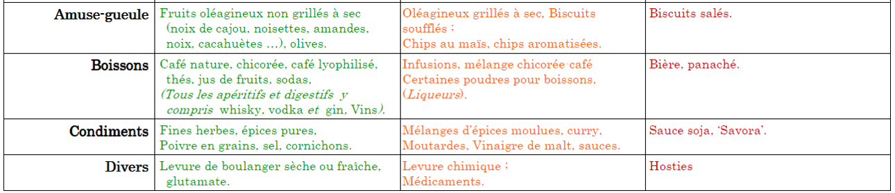 - La présence fortuite d’allergènes majeurs (contamination involontaire par contact avec d’autres produits sur la chaîne de fabrication, lors du stockage ou du transport) n’est pas impossible.